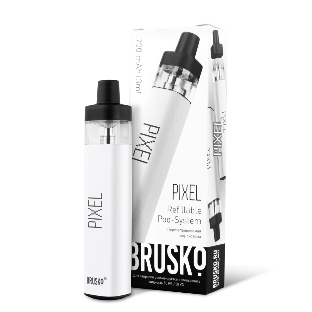 Перезаправляемая Под-Система Бруско Пиксель (Brusko Pixel) 700 mah, Белый - купить в Протвино