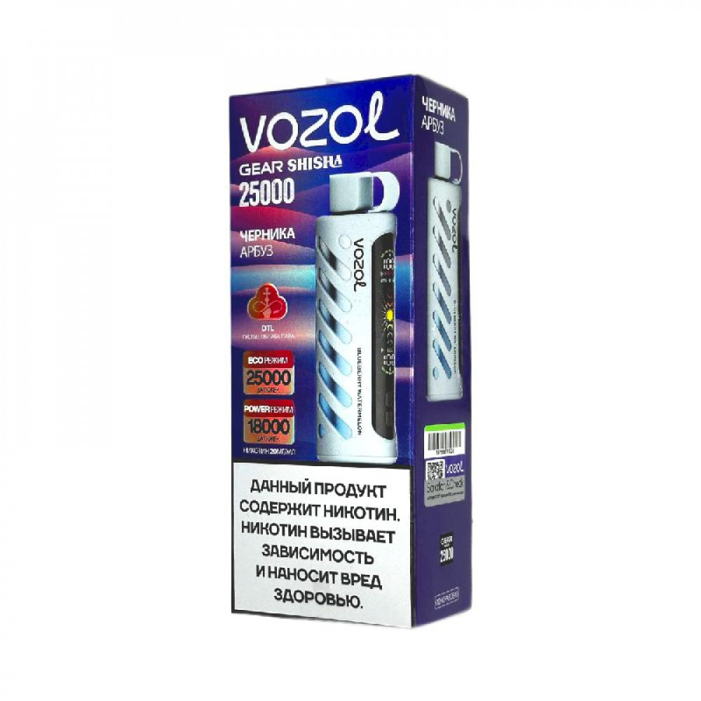 Электронная сигарета Vozol Gear Shisha 25000 затяжек - Черника арбуз - купить в Протвино